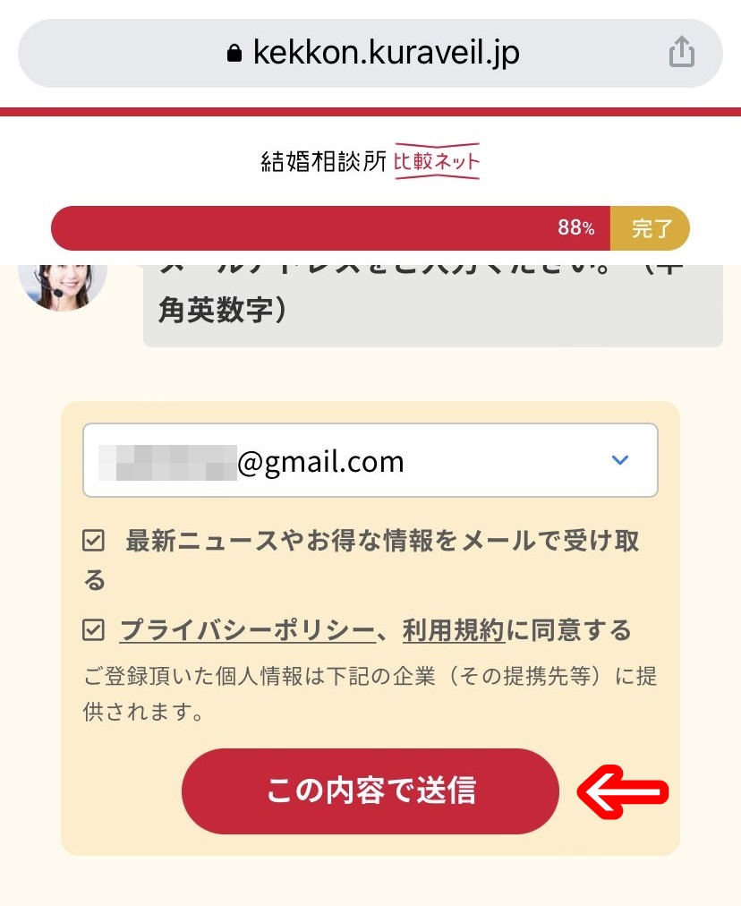 必要な情報を全て入力したあと「この内容で送信」ボタンを押すと完了です!